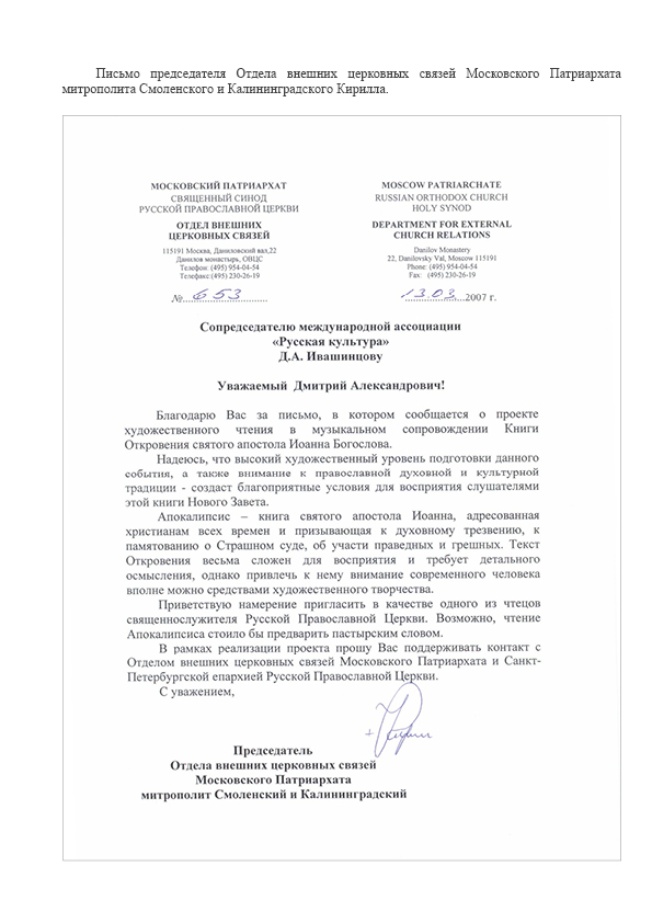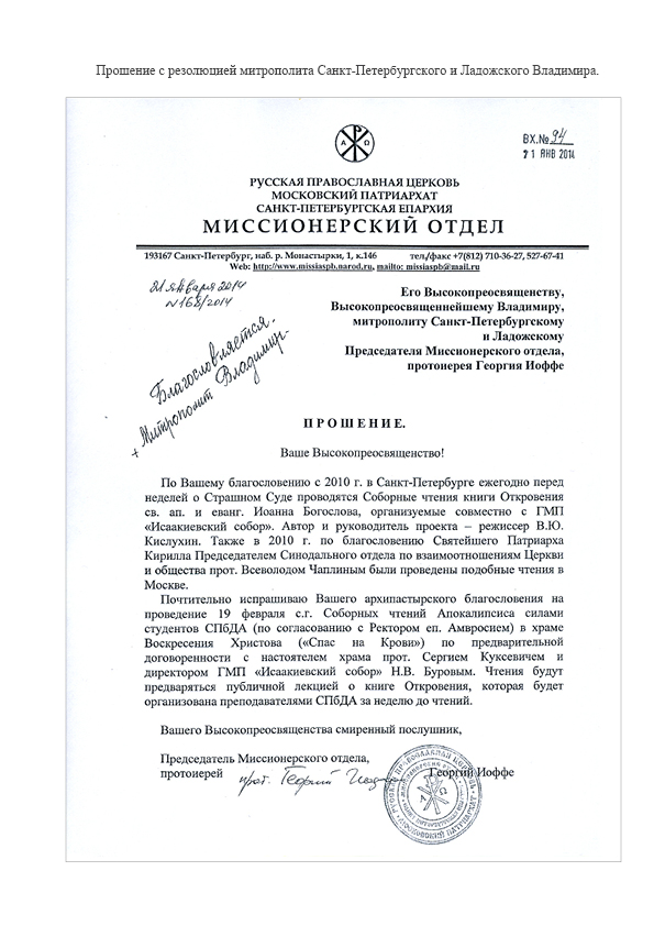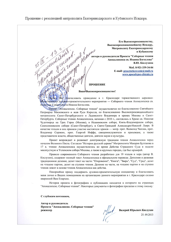 Апокалипсис, соборное чтение. Архив / Обращение к Президенту России В.В. Путину
